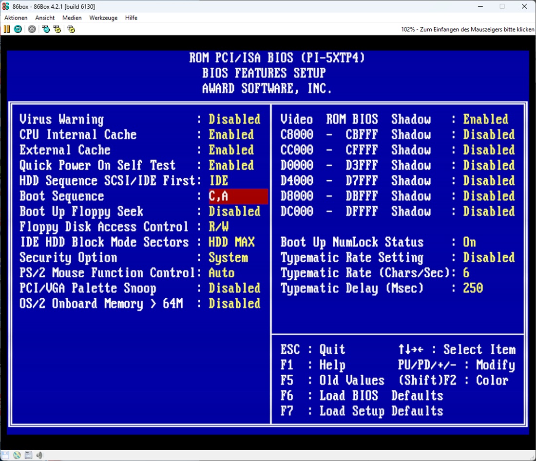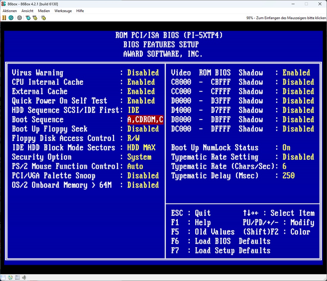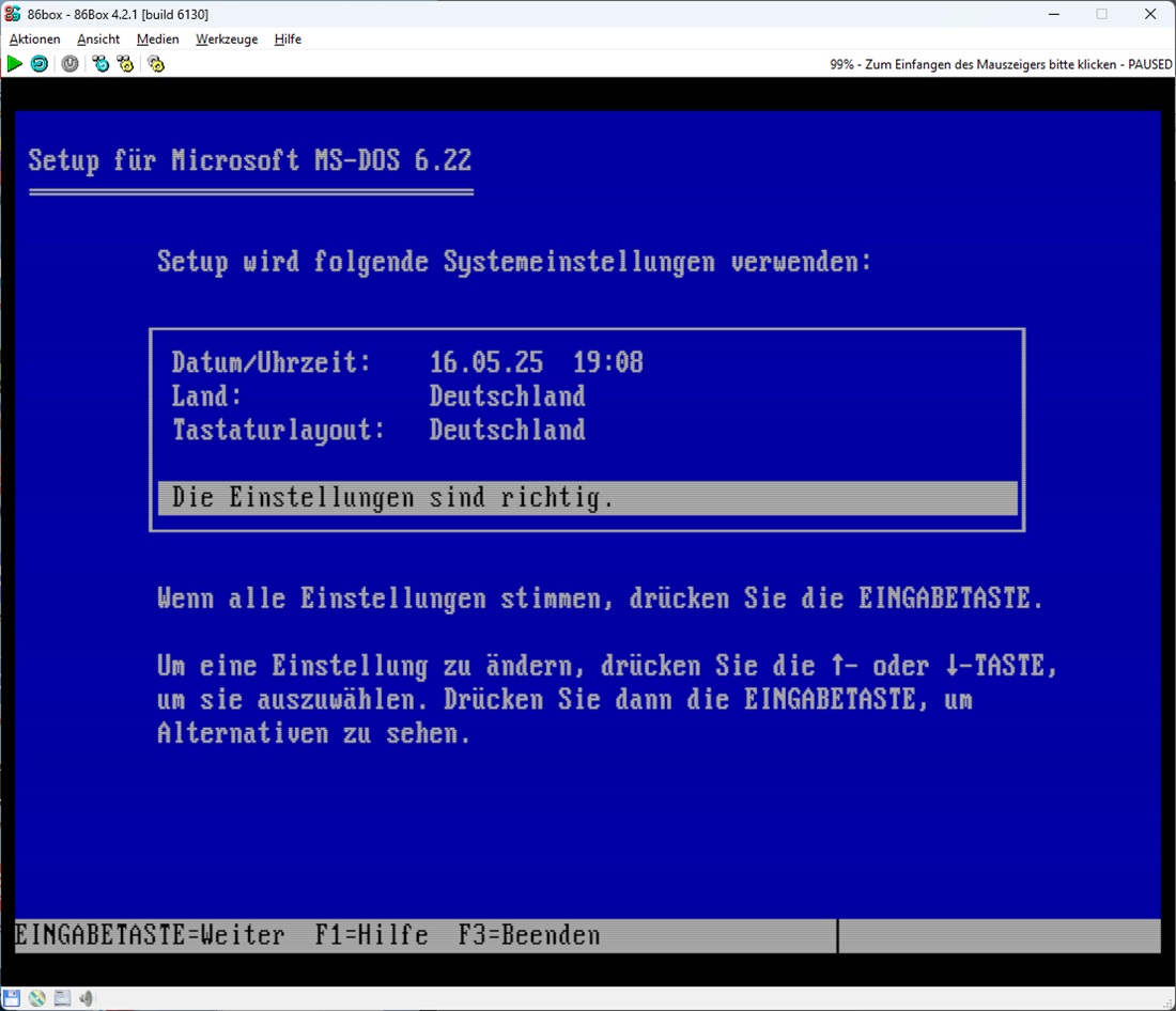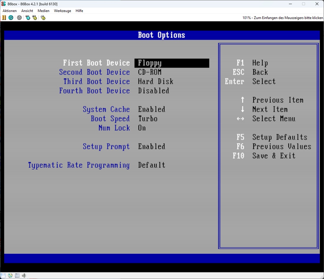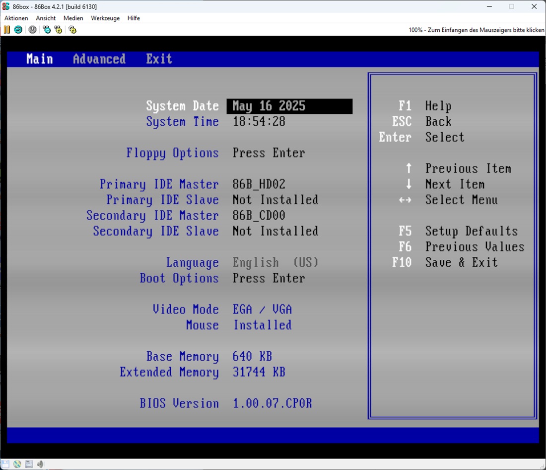 • Die ideale Konfiguration für ein typisches DOS-System in der 86Box.