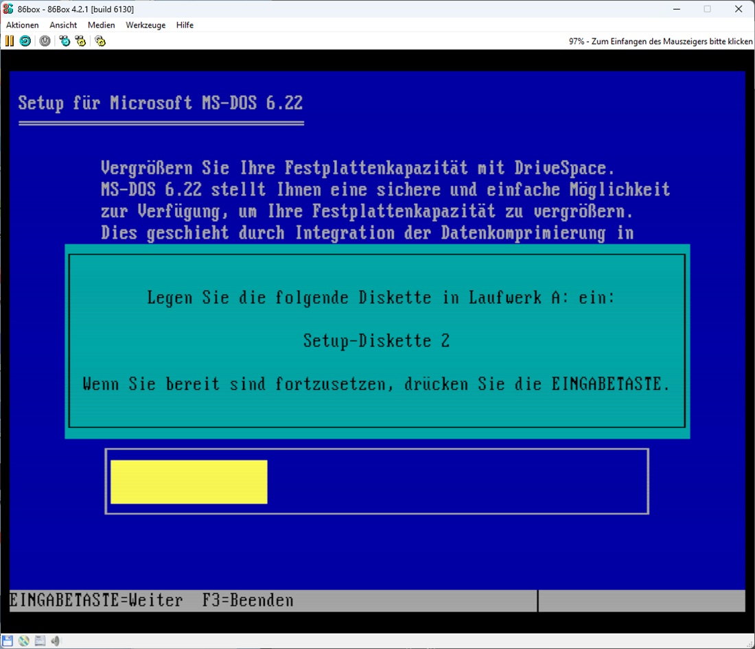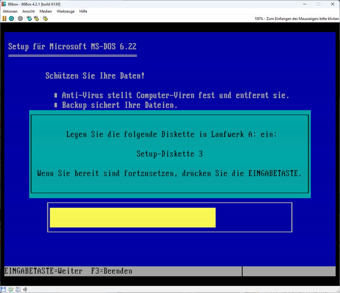 Wechsle die Diskette aus, lege die Setup-Diskette 3 in das Laufwerk ein und bestätige mit der Eingabetaste.