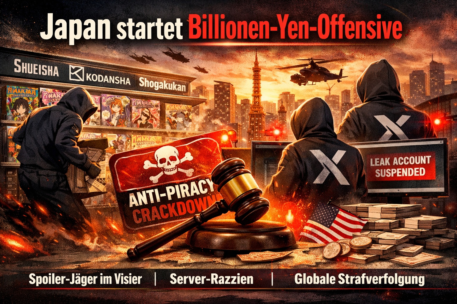 Die „Hayabare“ ist außerhalb Japans auch als Kultur der frühen Leaks bekannt. Sie hat die Manga-Community über Jahrzehnte geprägt, und jetzt ist sie so gut wie am Ende. Japans vier größten Verlage, Shueisha, Kodansha, Shogakukan und Kadokawa, sind über einfache Warnungen hinausgegangen und befinden sich nun im Kriegszustand. Diese koordinierte Aktion soll die gesamte Lieferkette der Piraterie angreifen: von den Einzelpersonen, die physische Magazine in Tokio stehlen, bis hin zu den Tech-Riesen, die die digitale Infrastruktur für illegale Uploads bereitstellen.